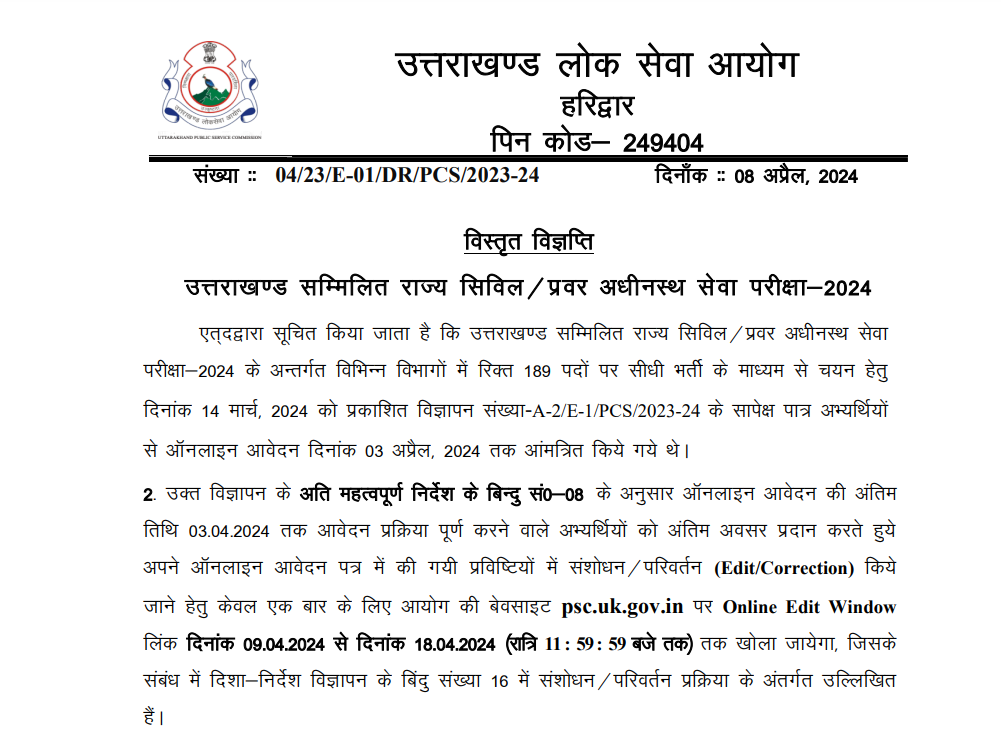 Uttarakhand: पीसीएस परीक्षा-2024 के लिए महत्वपूर्ण अपडेट, मिला यह मौका