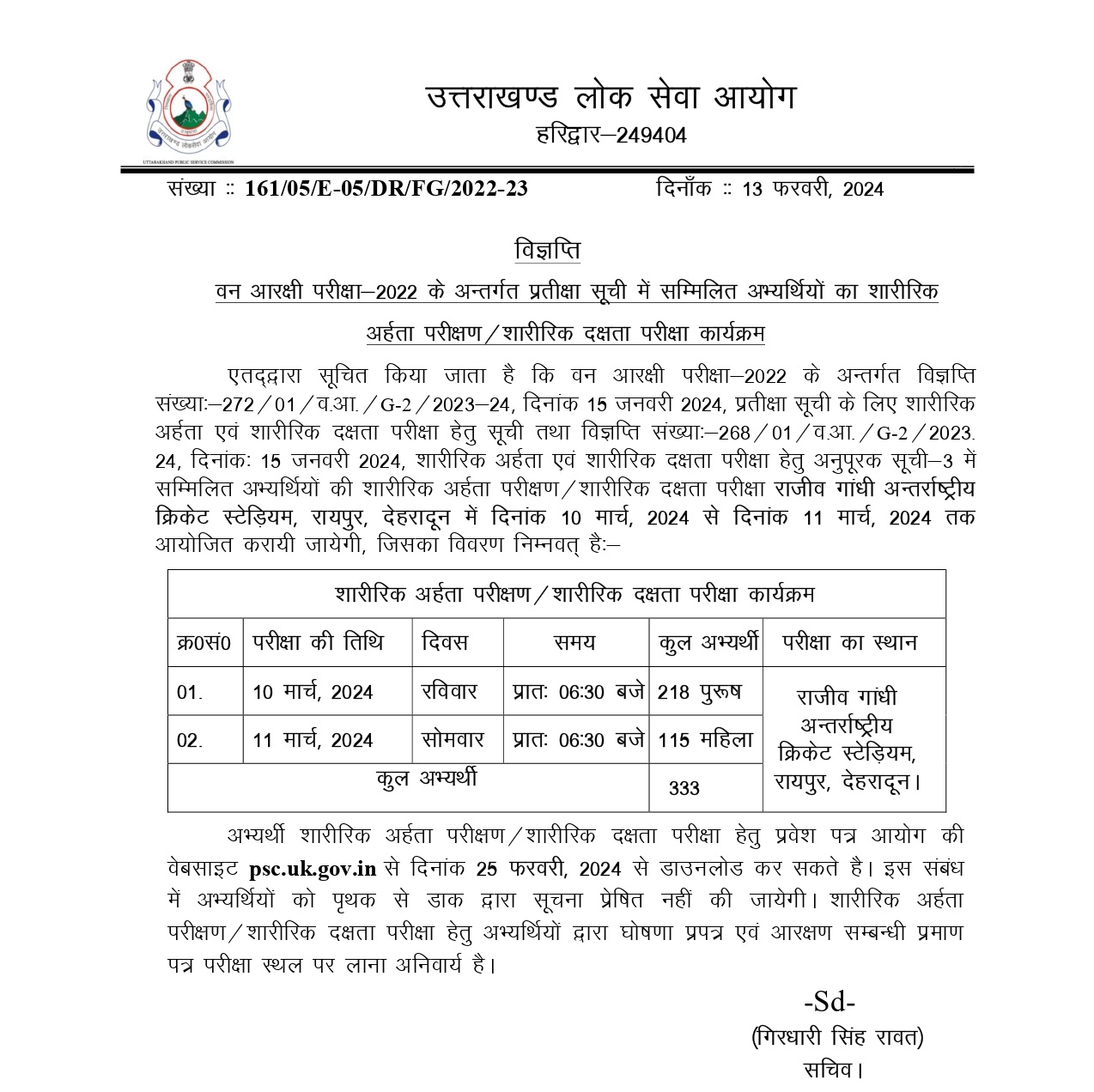 UKPSC Forest Guard Exam को लेकर महत्वपूर्ण सूचना