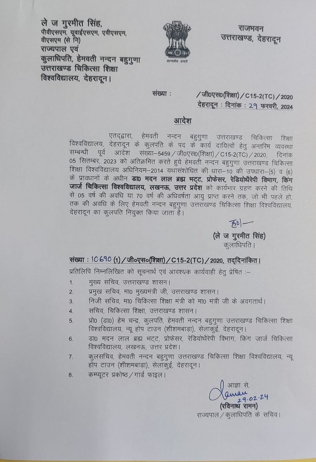 डॉ. भट्ट हेमवती नंदन बहुगुणा उत्तराखंड चिकित्सा शिक्षा विश्वविद्यालय देहरादून के नये कुलपति नियुक्त