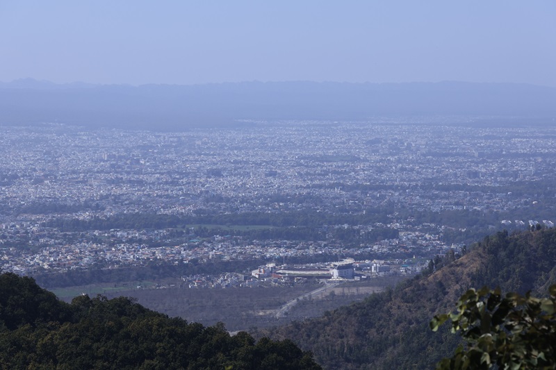 पर्वतीय मार्ग है, कहीं सड़क ठीक है और कई स्थानों पर कच्चा मार्ग है। जैसे जैसे ऊंचाई पर बढ़ते जाएंगे, देहरादून शहर की तस्वीर साफ होती जाएगी। घाटी में सौंग नदी दिखती है, जो टिहरी गढ़वाल से आ रही है और डोईवाला होते हुए गंगा में मिलती है।