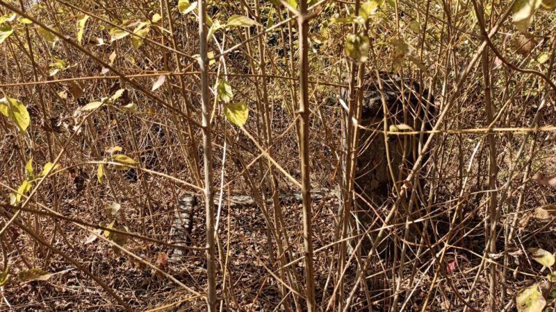 हमने इस जर्जर मकान की छत पर सुरक्षित जगह पर बैठकर मनवाल जी के घर से आए तुरड़ को मालू के पत्तों पर रखकर खाया। मसालेदार तुरड़ खाना एक शानदार अनुभव रहा। हम वापस लौटे तो रास्ता दूसरा था। इस बार हम ढलान पर थे। हम खेतों के बीच से खुद के कपड़ों को कंटीली झाड़ियों से बचाते हुए नीचे उतर रहे थे। हमें खेती की इस दुर्दशा पर दुख हो रहा था। कुछ हिस्सा वन क्षेत्र से भी होकर आगे बढ़े। हम सड़क पर पहुंच गए थे, एक ऐसे गांव की यादों को लेकर, जहां खेत ही नहीं दिखते।