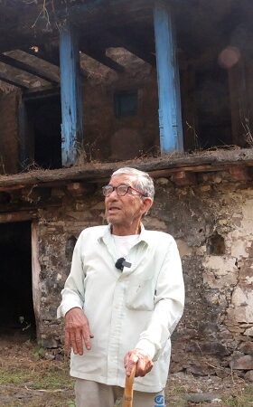 पहले हिस्से में दो मकान हैं, जिनमें बुजुर्ग चंदन सिंह कंडारी, उनकी पत्नी कमला देवी, भाई पूरण सिंह अपनी पत्नी रोशनी देवी के साथ रहते हैं। इनके बच्चे रोजगार के सिलसिले में शहरों में रह रहे हैं। बच्चे इनका ख्याल रखते हैं, जरूरी सामान भेजते हैं और गांव आते जाते रहते हैं। चंदन सिंह कंडारी हमें अपने घर के सामने आम का बागीचा और खेत दिखाते हुए कहते हैं, पानी बिना सब सूखा पड़ा है। सिंचाई की गूल टूट गई हैं। अब तो पीने का पानी भी बहुत कम आता है। उन्होंने पशु पालने बंद कर दिए हैं, क्योंकि फसल नहीं होने पर पशुओं के लिए चारे का संकट बन जाता। वैसे भी इस आयु में उनसे पशुपालन नहीं हो सकता।