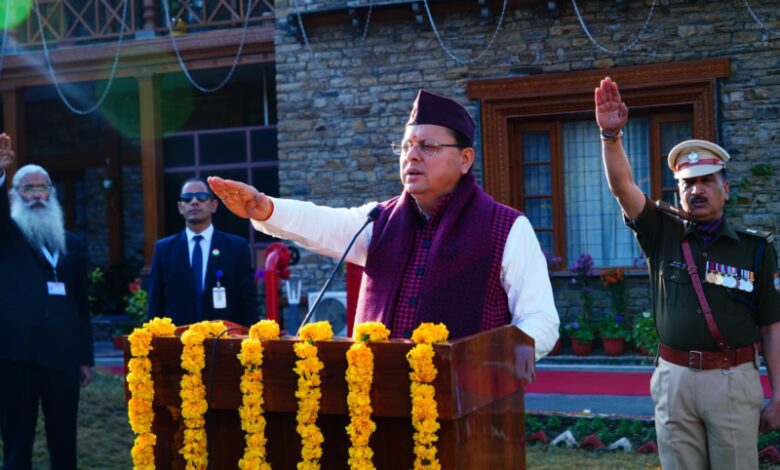 सीएम धामी ने गणतंत्र दिवस पर फहराया राष्ट्रीय ध्वज,संविधान की उद्देशिका की शपथ दिलाई