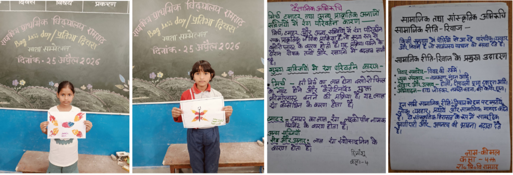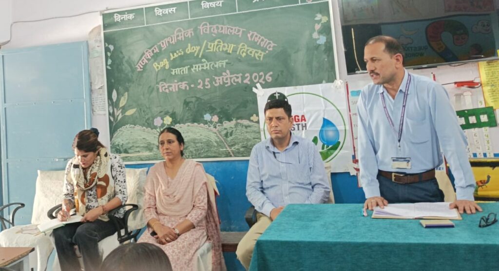 Bagless Day Pratibha Diwas 2026: देहरादून, 25 अप्रैल, 2026ः राजकीय प्राथमिक विद्यालय रामगढ़ में शनिवार को नवीन शैक्षिक सत्र 2026-27 के पहले बैग लेस डे/प्रतिभा दिवस का आयोजन किया गया। प्रतिभा दिवस के अंतर्गत माता सम्मेलन का भी आयोजन किया गया, जिसमें विद्यालय में अध्ययनरत छात्रों की माताओं ने प्रतिभाग किया। सभी कक्षा के छात्र-छात्राओं ने माताओं के सामने प्रतिभा दिवस के लिए निर्धारित गतिविधियों हिंदी, अंग्रेजी भाषा में अपना परिचय, कविता आदि प्रस्तुत किए।