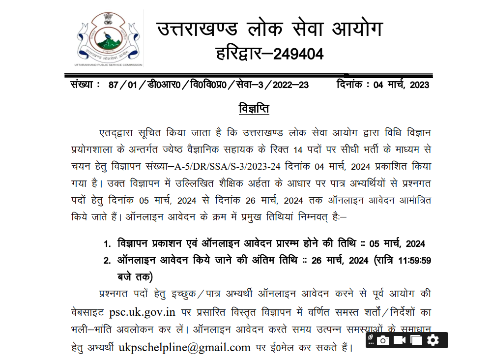 UKPSC ने इन पदों के लिए मांगें आवेदन, अंतिम तिथि 26 मार्च