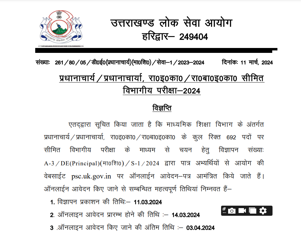 उत्तराखंड में प्रिंसिपल के 692 पद, 14 मार्च से शुरू होंगे आवेदन