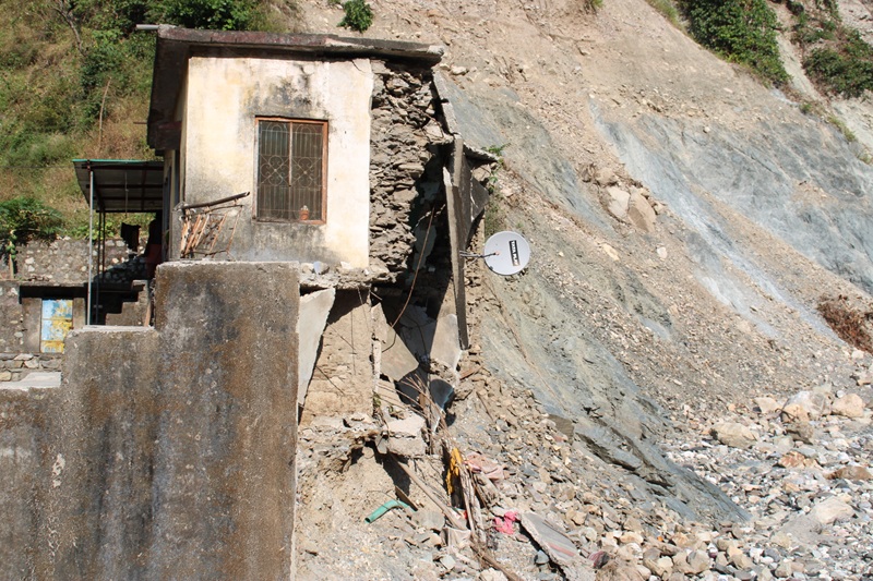 देवेंद्र बताते हैं, “सड़क बनाना अच्छी बात है, पर मलबे के डंपिंग जोन भी बनाए जाने चाहिए थे। 15-16 सितम्बर 2025 की आपदा की वजह भी यही मलबा था, नहीं तो आज तक हमने ऐसी बाढ़ इस नदी में नहीं देखी। इस मलबे की वजह से नदी में कई जगह बंधे बन गए थे, जो उस तेज बारिश में आई बाढ़ से टूटे और पानी हमारे मकान के पीछे जोरदार टक्कर मारता रहा। आखिर में, उसने पूरे मकान को ध्वस्त कर दिया।”